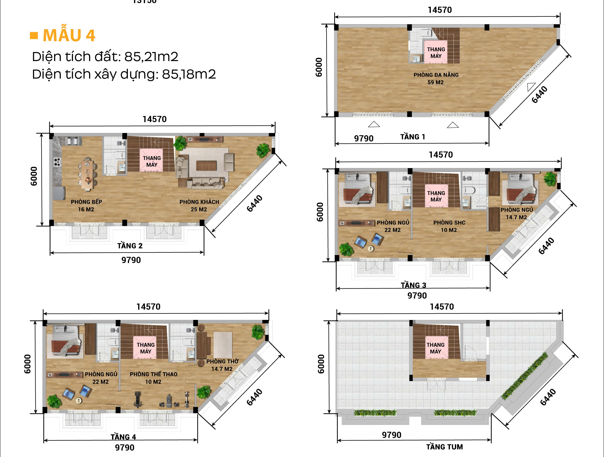 - Diện tích mỗi căn: Từ 57,97 m2 – 108,34 m2